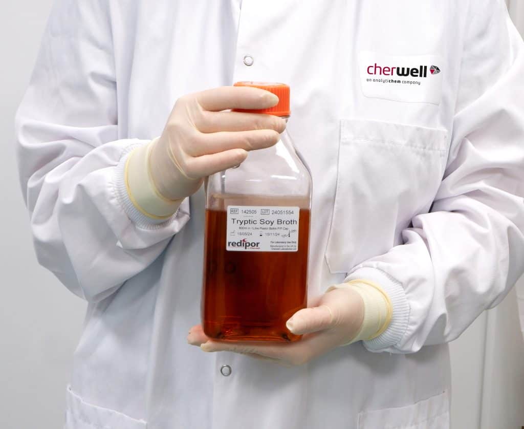 Cherwell offers a variety of bottled media products for sterile processing applications including sterility testing, as well as operator and process validation. All prepared bottled media products are manufactured and terminally sterilised within Cherwell’s cleanroom facility. They are subject to stringent quality checks and QC certified.